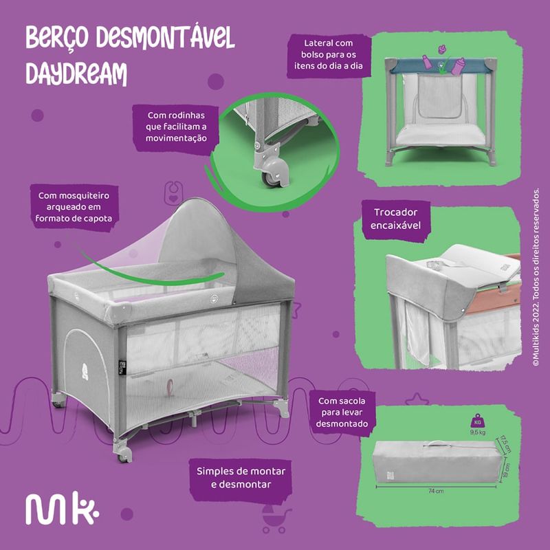 Procurando um berço prático e seguro para seu bebê? Apresentamos o Berço Desmontável DayDream da Multikids Baby. Este produto premium e exclusivo foi desenvolvido pensando no conforto e praticidade para pais e bebês!