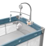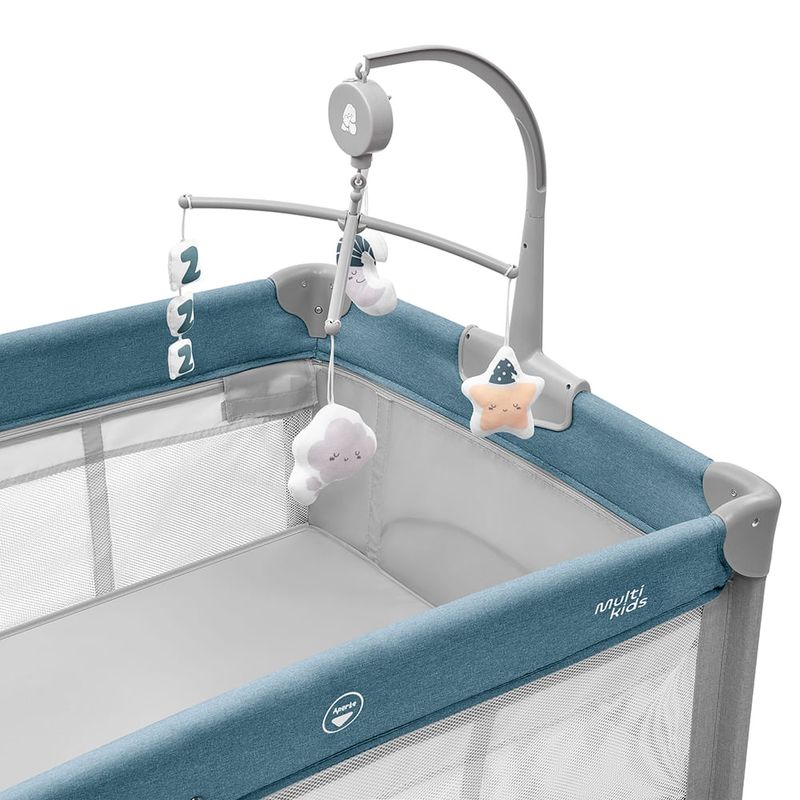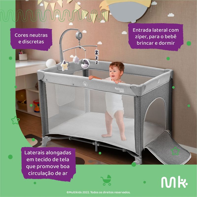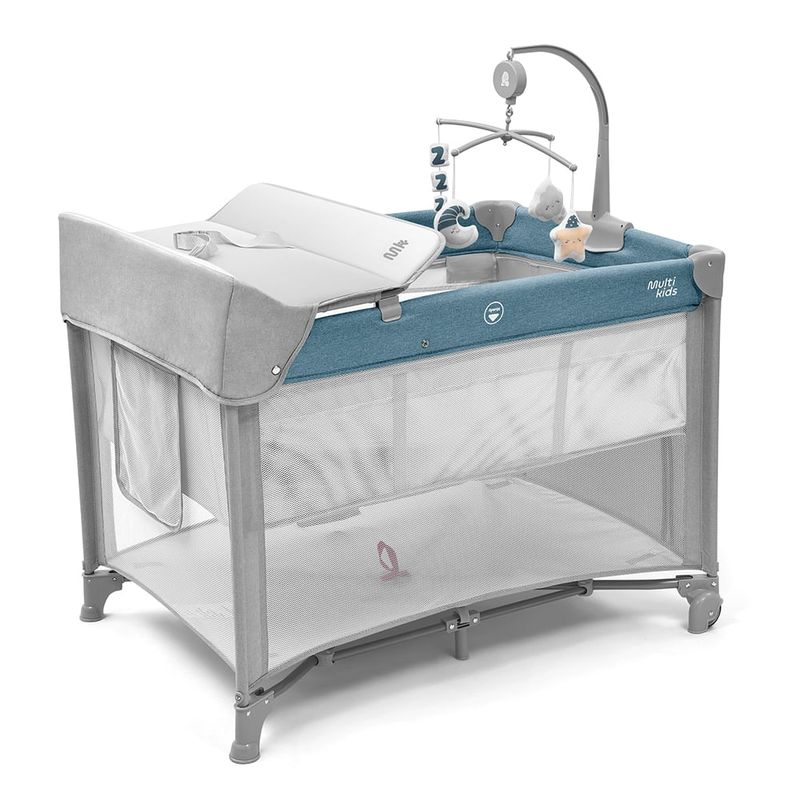 Imagine a praticidade de ter um berço versátil, com duas alturas ajustáveis, móbile com brinquedos e caixa de música para relaxamento. Além disso, inclui um trocador portátil e bolsos para armazenar itens essenciais.