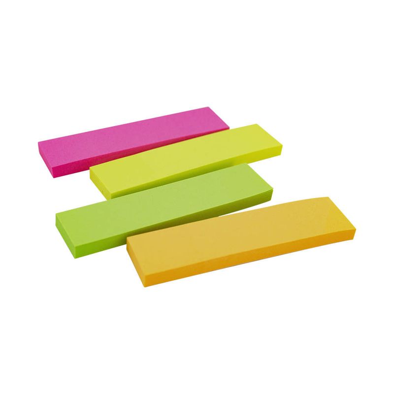 Com suas cores neon, fica mais fácil notar o trecho marcado, e as notas adesivas são facilmente reposicionáveis sem danificar a superfície onde foram aplicadas.