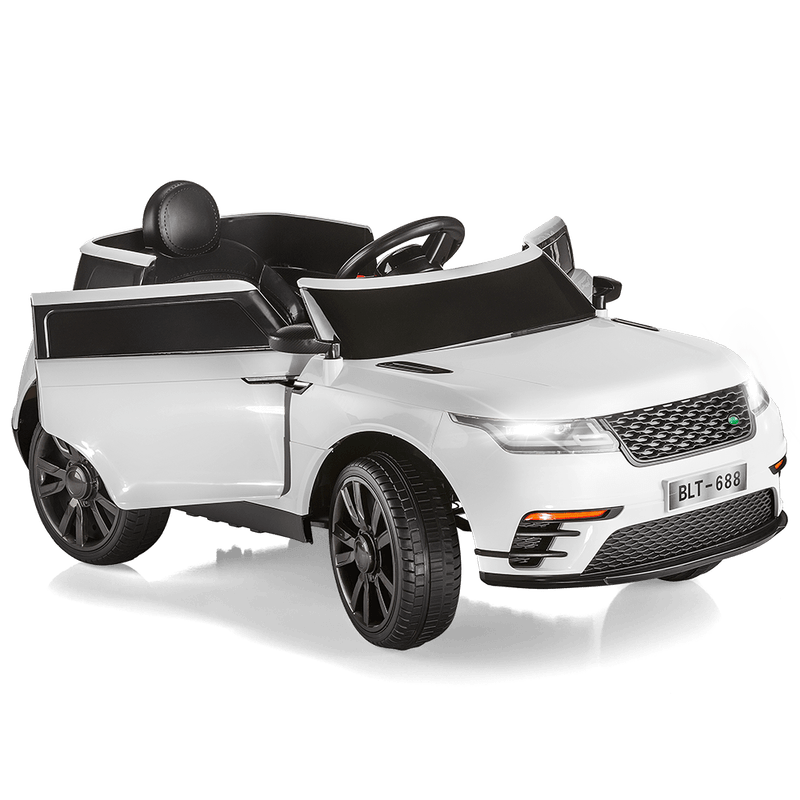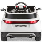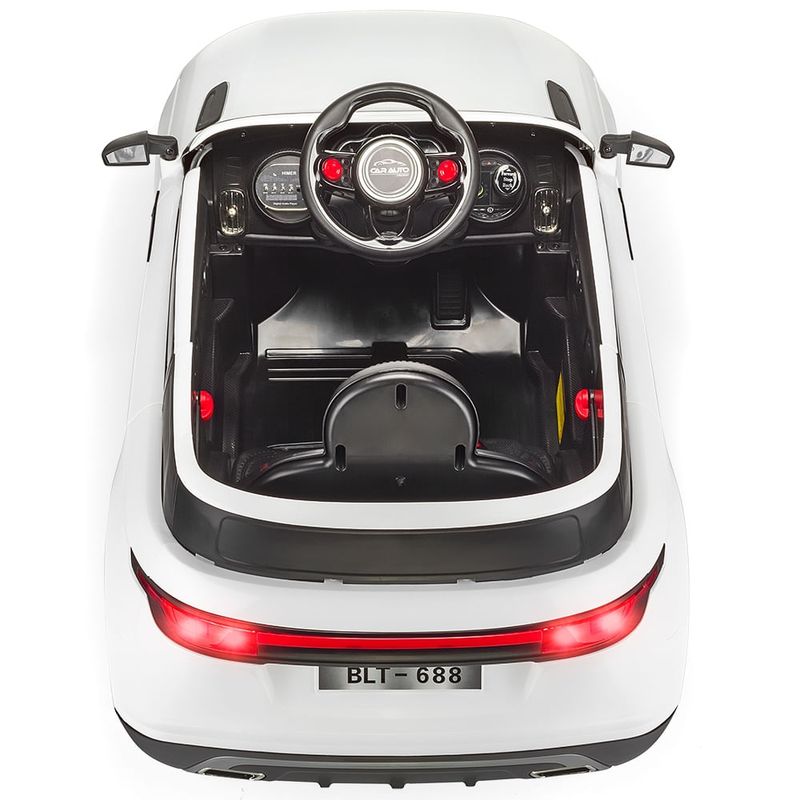 Um super carro elétrico com design moderno, volante e controle remoto para brincar de ser um motorista de verdade, com toda a segurança garantida!