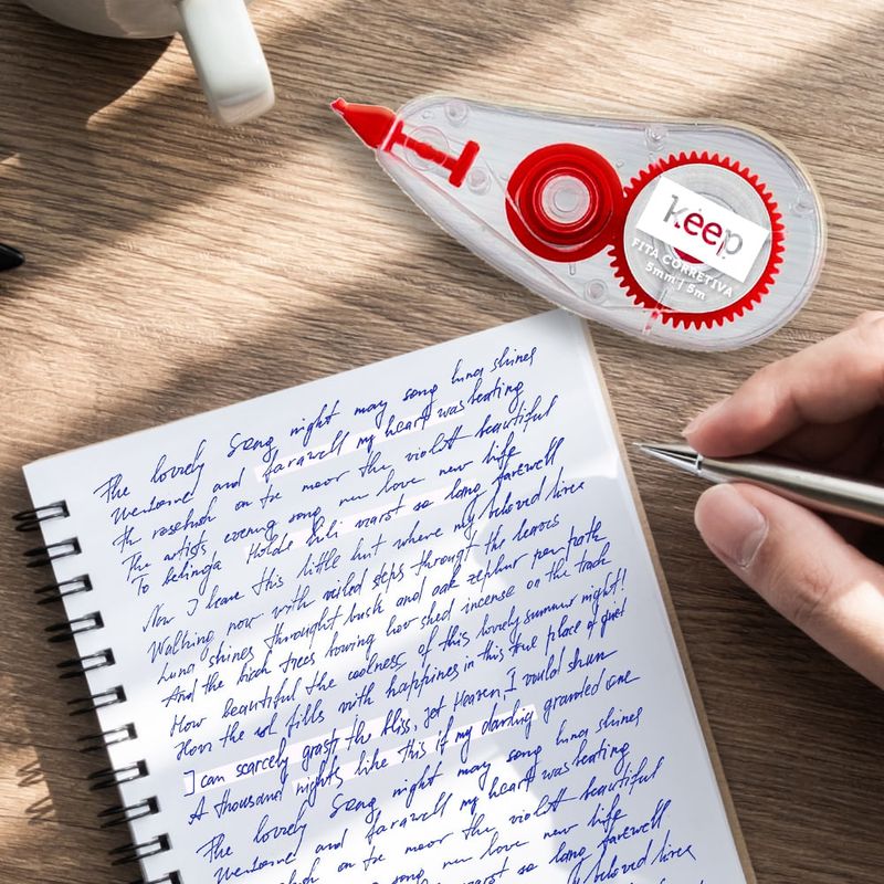 Prática, compacta e super fácil de usar, a Fita Corretiva da Keep vai transformar todos os erros em uma nova oportunidade de recomeçar.