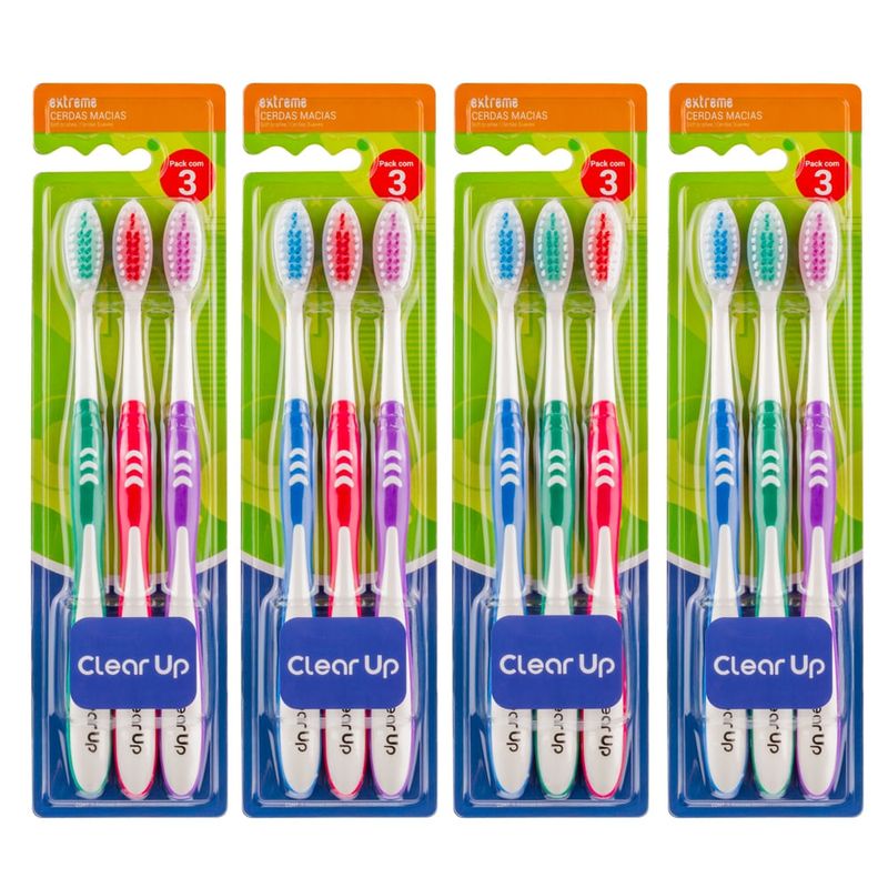 Escova de Dente Extreme Clear Up com 3 Unidades (Cores Sortidas) Multi Saúde - HC589