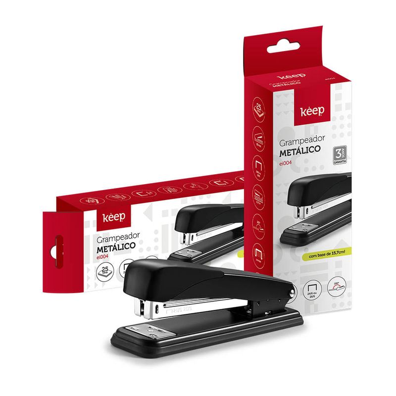 Grampeador metálico. Abertura 180°, ainda mais fácil de recarregar!