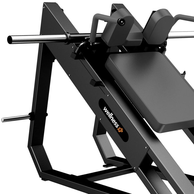 O Hack Squat Wellness é o equipamento perfeito para fortalecer a parte inferior do corpo, aproveite os benefícios do agachamento com o Hack Squat da Wellness. Realiza diferentes variações de agachamento em afundo.