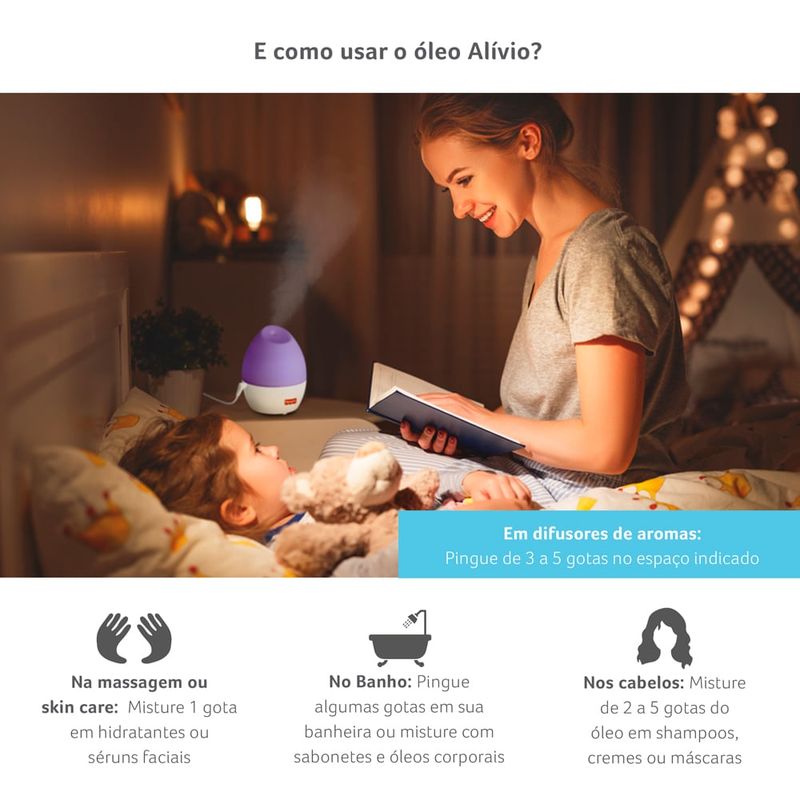 PARA AROMATERAPIA: Pingue de 2 a 3 gotas de óleo essencial no local indicado do seu difusor de aromas ou umidificador.