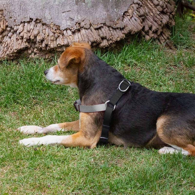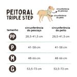 O Peitoral Triple Step conta com duas argolas que garantem uma proteção dupla no encaixe da guia e tiras laterais reguláveis para o conforto do seu pet, além de um botão com trava em sua fivela para reforçar a segurança.