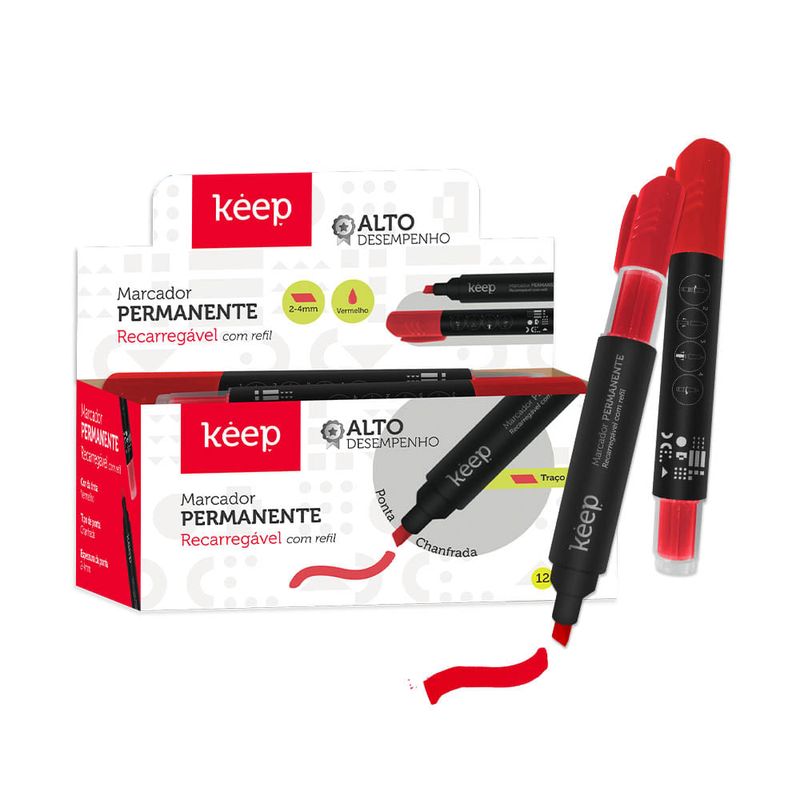 Este marcador permanente possui ponta chanfrada de 2-4mm e pode ser utilizado em diversas superfícies, como papel, madeira, metal, vidro, entre outras. Possui alto desempenho, seca rapidinho, deixa as cores vivas e é resistente à agua! Pode ser recarregado com uma simples troca de refil.