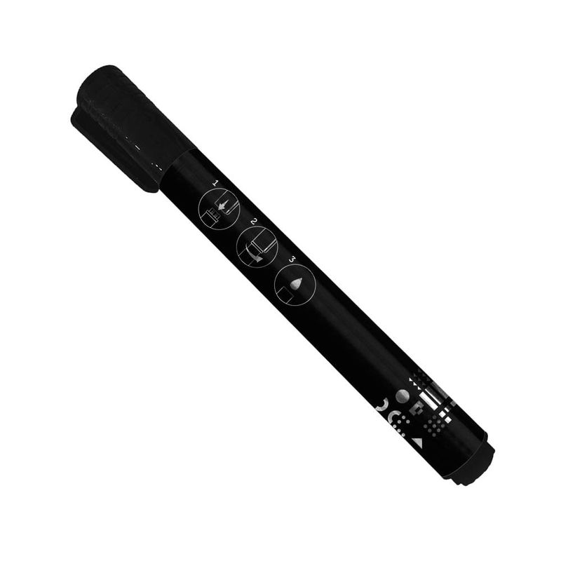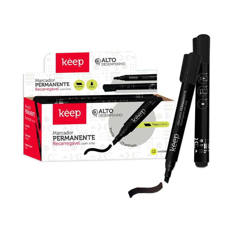Este marcador permanente possui ponta chanfrada de 2-4mm e pode ser utilizado em diversas superfícies, como papel, madeira, metal, vidro, entre outras. Possui alto desempenho e pode ser recarregável com tinta. É atóxico, resistente à agua, mantém as cores vivas e seca rapidinho!