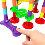 Cores vibrantes e material resistente ajuda na percepção e criatividade dos pequenos! São diversas cores, formas e 76 peças para construir um circuito completo e desafiador. Veja as bolinhas descerem pelos tubos do Marble Run e vence a mais rápida! Estimula diversas áreas do desenvolvimento infantil - coordenação motora, raciocínio lógico, acompanhamento visual e desenvolvimento cognitivo.