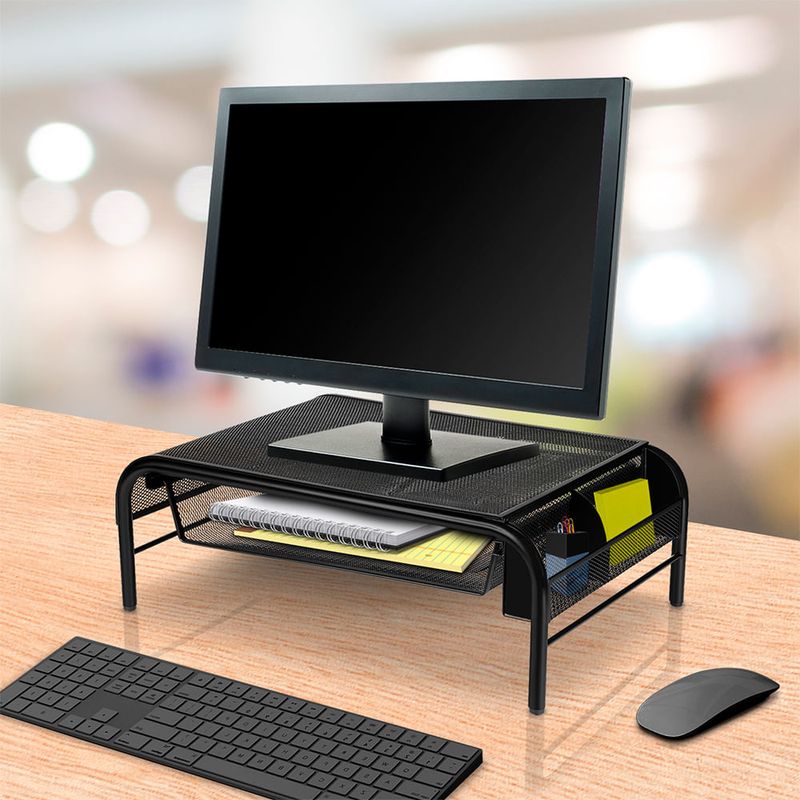 Suporte para monitor com organizador de mesa aramado, para deixar seu escritório ainda mais organizado.