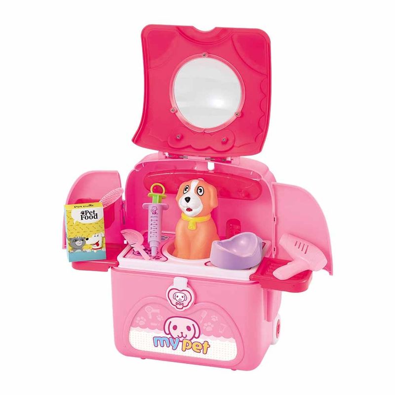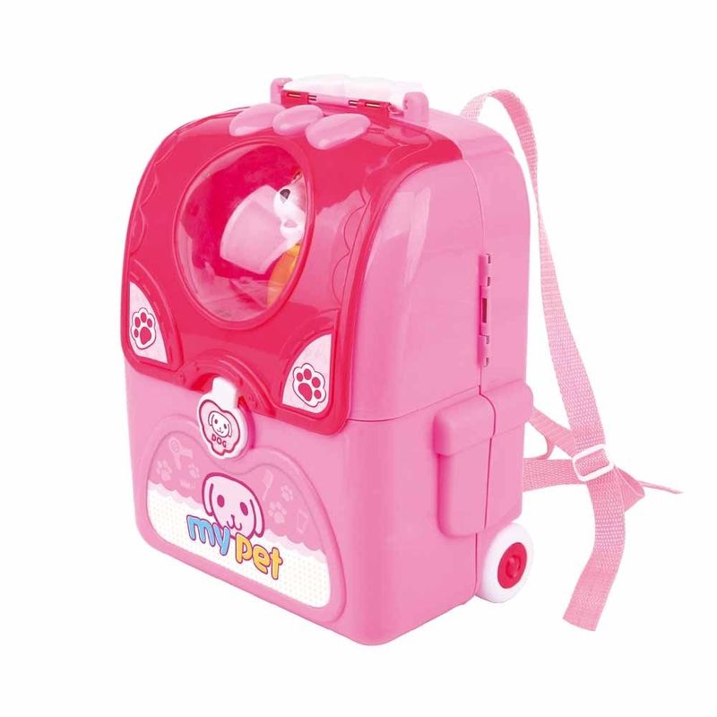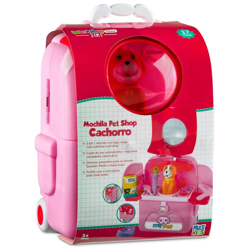 A Mochila Pet Shop Cachorrinho é super estilosa, completa e com função 3 em 1: mochila com alças, rodinhas e estação de cuidados. Acompanha mais de 10 acessórios temáticos para brincar de ser um(a) veterinário(a) de verdade: escovinha, pente, injeção e um cachorrinho super fofo para cuidar e dar todo o amor necessário!